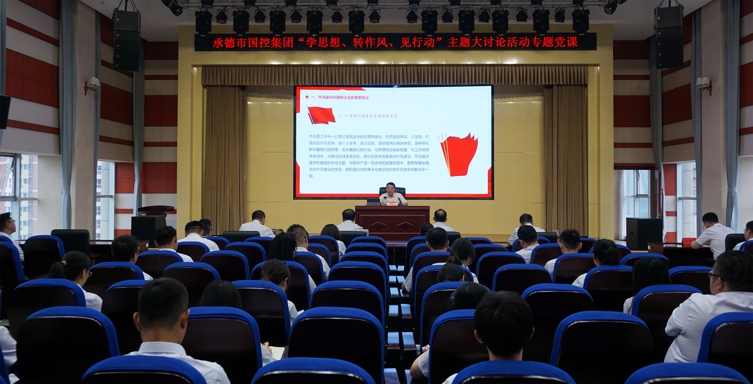 7月12日,為深入學習貫徹習近平總書記關于堅持不懈抓好作風建設的重要論述,落實市委市政府關于在全市開展“學思想、轉(zhuǎn)作風、見行動”主題大討論活動精神,國控集團召開“學思想、轉(zhuǎn)作風、見行動”主題大討論活動專題黨課。